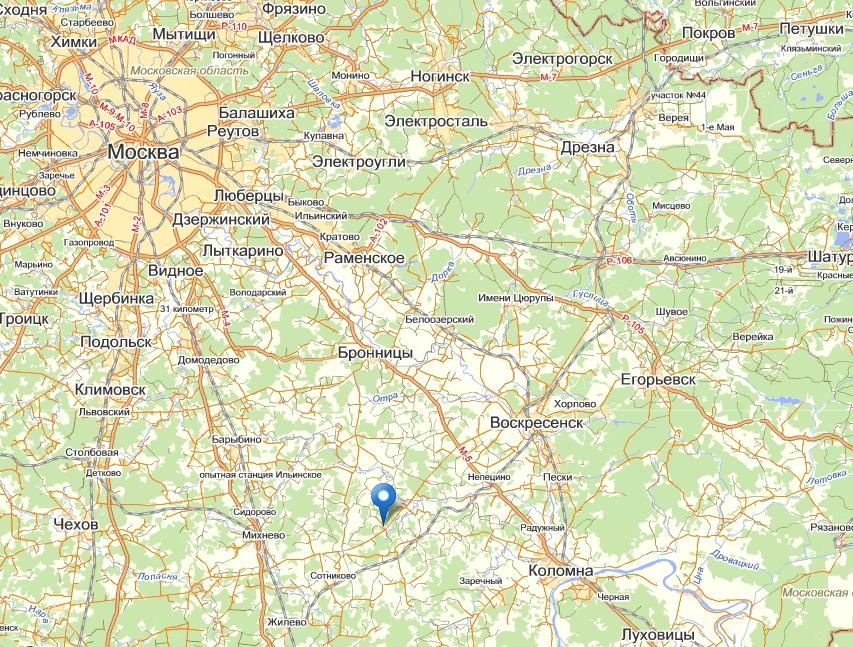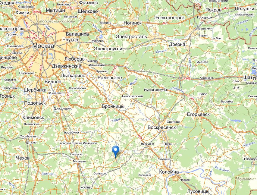 60 км от МКАД, между Новорязанским и Каширским шоссе