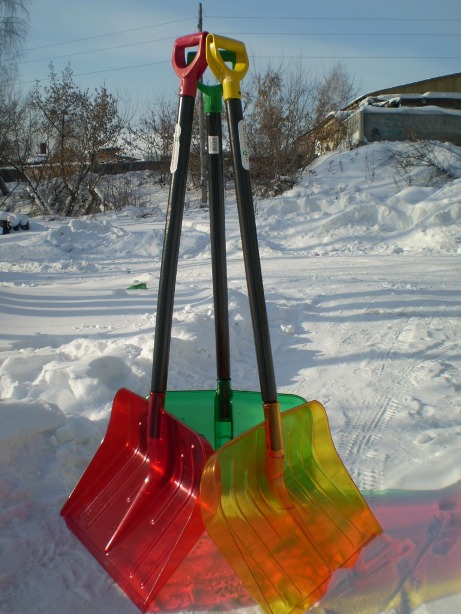 Совок лопаты выполнен из специального ударопрочного пластика - Поликарбоната (из него изготавливают иллюминаторы в самолетах), стойкого к морозам и физическим воздействиям.